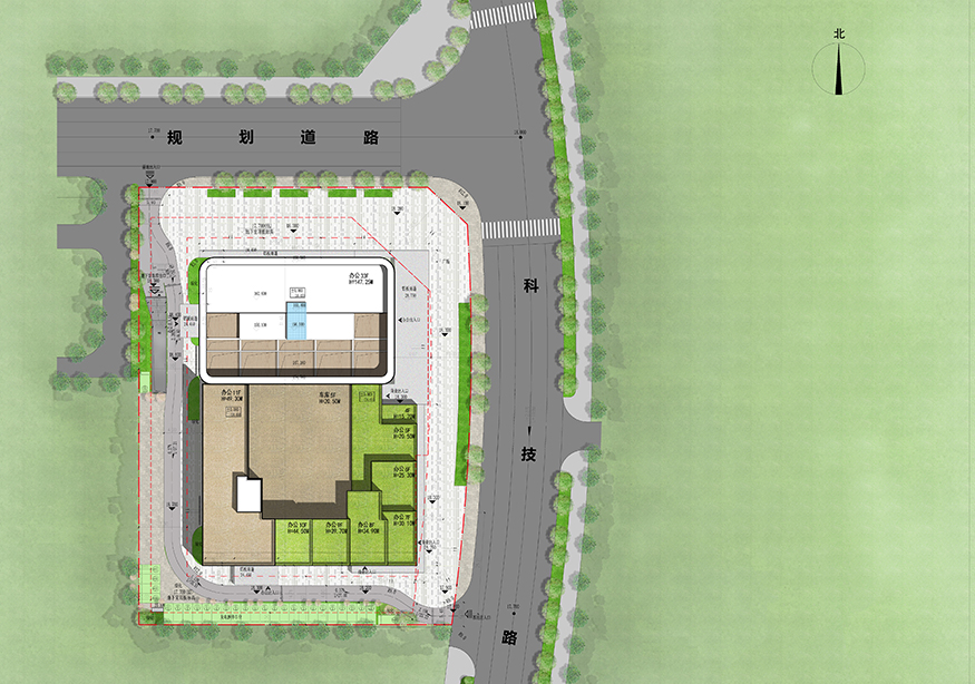 建設用地面積為 8788 ㎡,建筑分為地上辦公三十三層,高度為 147.25 米,地下為二層地下室??偨ㄖ娣e為 77796.11 ㎡ ,其中計容建筑面積52728 ㎡,不計容建筑面積 25068.11 ㎡??紤]基地的用地性質(zhì)及城市規(guī)劃的空間要求,建筑采用退臺式裙房及超高層塔樓組合布局方式,強調(diào)高層塔樓開敞及景觀視線的通透感。下部設商業(yè)及服務空間,便于靈活組合空間,為提高觀景率,建筑采用方正,大開間退臺式平面,有利于觀景和通風等多方面的要求。建筑在最大限度的保證南北朝向的同時,避免基地內(nèi)高層建筑與相鄰建筑的視線干擾對視,適當拉開間距以降低壓抑感。