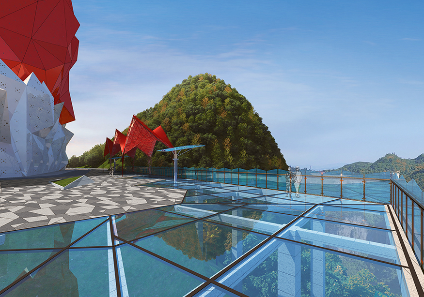 項(xiàng)目選址環(huán)境清雅舒適,設(shè)施齊全。放眼望去,酒店恍若一顆碩大的朱砂紅寶石橫空出世,鑲嵌在山巒之巔,高聳入云,直取天際,十分驚艷。在懸崖棧道盡頭有升降電梯直達(dá)酒店,為來此旅游的游客提供了更具文化品位與更貼心的度假空間。