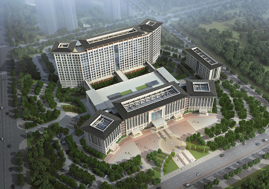 建筑群總體平面形態(tài)呈“鰲”形,形象的說明睢縣中醫(yī)院在當(dāng)?shù)蒯t(yī)療領(lǐng)域乃至全國中醫(yī)院系統(tǒng)獨(dú)占鰲頭,同時(shí)也象征來此就醫(yī)的患者能夠健康長(zhǎng)壽。